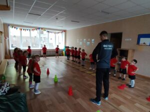 , яке подарувало дітям справжнє спортивне свято. Організаторами свята були: інструктор з фізичної культури ХЗДО 21 “Ластівка” Лариса Федорова та футбольна академія “Рівень”. Під керівництвом тренерів діти виконували вправи на координацію, вчилися передавати м’яч, відпрацьовували удари по м’ячу. Для дітей такі тренування – це крок до впевненості у власних силах і джерело гарного настрою.