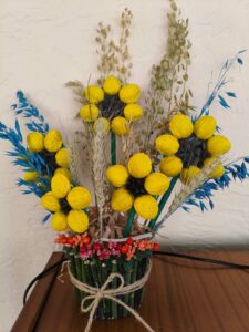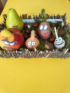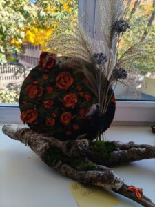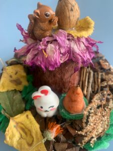– чарівна, тепла, щедра на барви та врожаї. Вона лагідно прощається з нами, залишаючи свій слід у яскравих дитячих роботах з природнього матеріалу. Листочки, жолуді, каштани, гілочки й насіння перетворилися в руках малят та їх батьків на справжні витвори мистецтва – казкових звірят,чудернацькі будиночки, осінні букети. Кожна робота – це частинка осіннього настрою, тепло дитячих сердець і вдячність природі за її красу та натхнення. Щира подяка батькам та дітям за активну участь у створенні осінніх розробок. Ваша фантазія, творчість зачаровує.