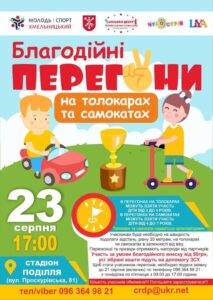23 серпня о 17.00 відбудуться благодійні перегони на толокарах та самокатах від міського Центру по роботі з дітьми та підлітками за місцем проживання.В перегонах на толокарах можуть взяти участь діти від 2 до 4 років.В перегонах на самокатах можуть взяти участь діти від 4 до 7 років.Толокари та самокати надаються організаторами!Учасникам буде необхідно подолати відстань, рівну 20 метрам, на толокарах чи самокатах (залежно від віку).Переможці та призери отримають нагороди від партнерів.Участь за умови благодійного внеску від 50 грн. Усі зібрані кошти підуть на допомогу ЗСУ.Щоб стати учасником перегонів, необхідно подати заявку до 21 серпня (включно) за номером: 096 364 98 21 з понеділка до п’ятниці з 9.00 до 17.00.Кількість учасників обмежена. Поспішайте зареєструватися!