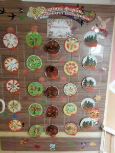 Минає золота осінь – чарівна, тепла, щедра на барви та врожаї. Вона лагідно прощається з нами, залишаючи свій слід у яскравих дитячих роботах з природнього матеріалу. Листочки, жолуді, каштани, гілочки й насіння перетворилися в руках малят та їх батьків на справжні витвори мистецтва – казкових звірят,чудернацькі будиночки, осінні букети. Кожна робота – це частинка осіннього настрою, тепло дитячих сердець і вдячність природі за її красу та натхнення. Щира подяка батькам та дітям за активну участь у створенні осінніх розробок. Ваша фантазія, творчість зачаровує.
